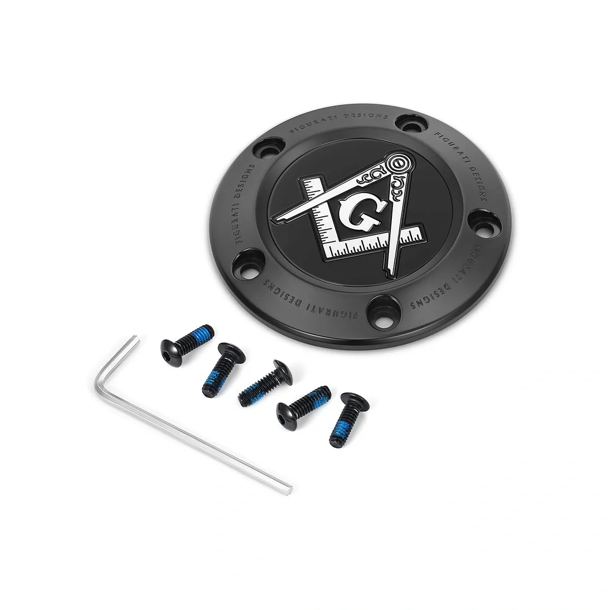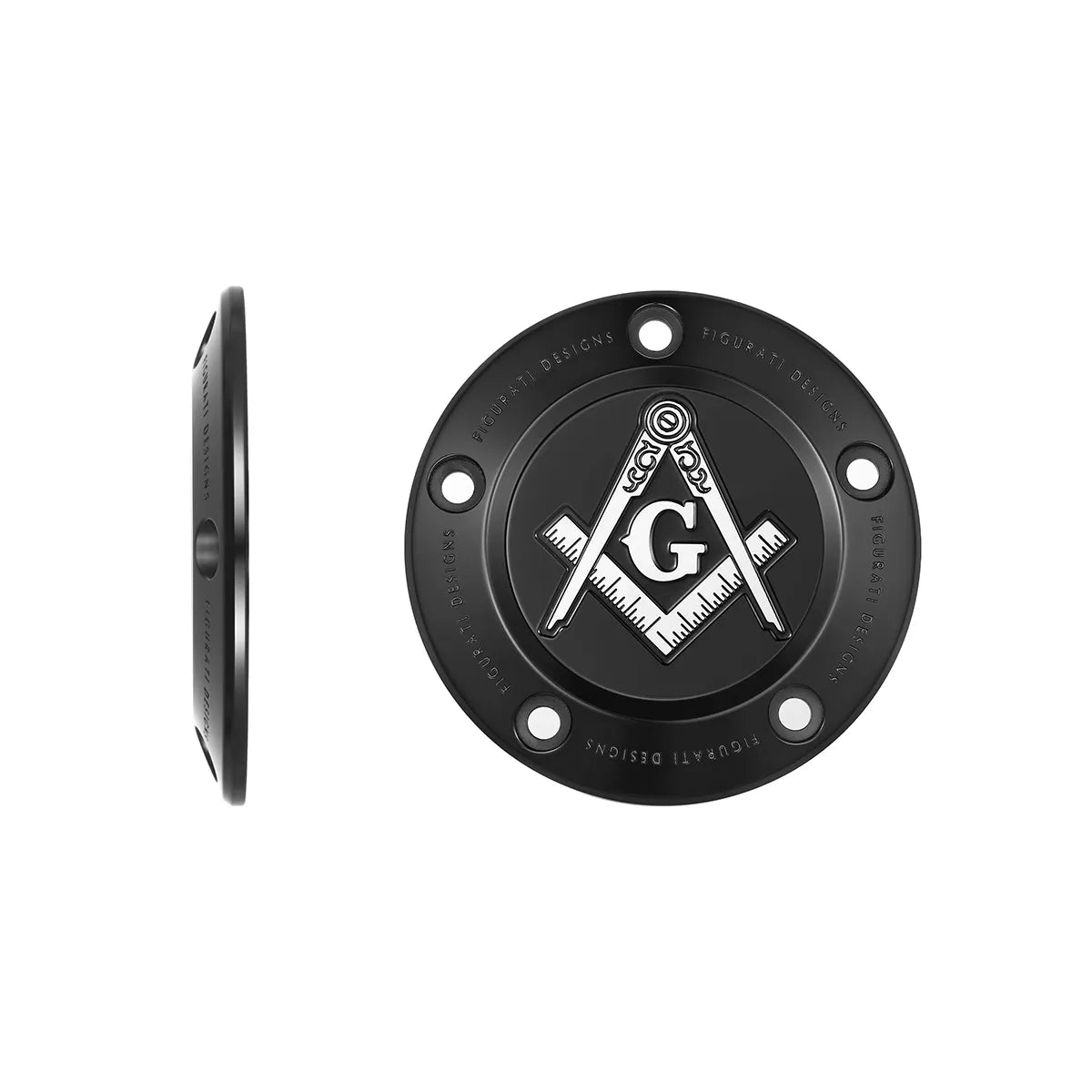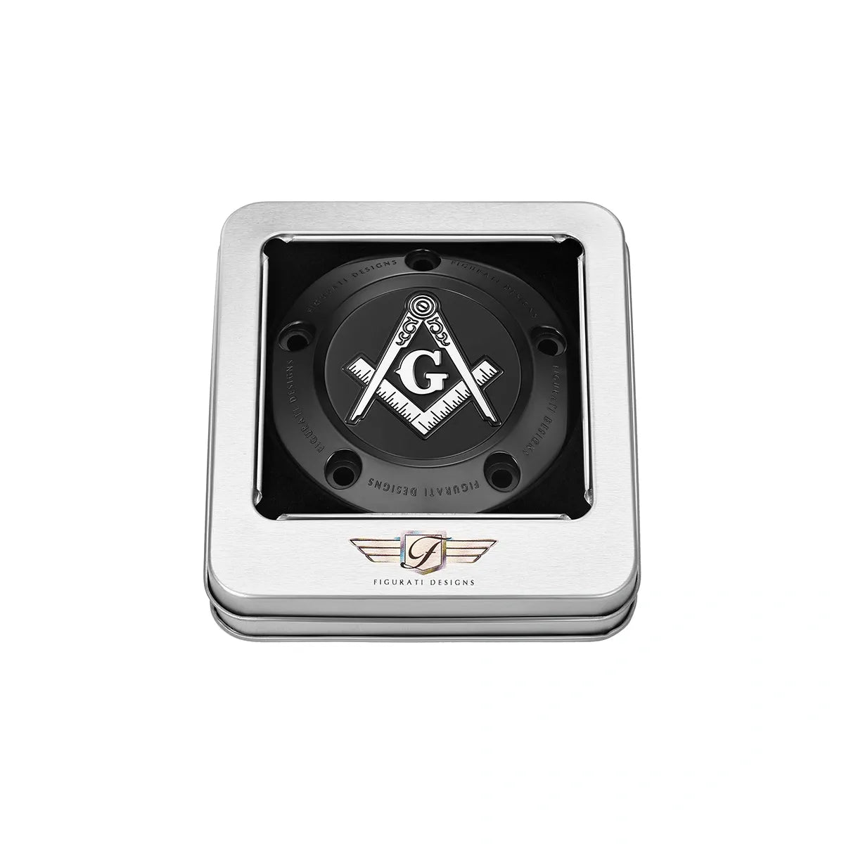 Lleve su cubierta de sincronización al siguiente nivel con una cubierta de sincronización con emblema masónico personalizado de Figurati Designs, hecha de acero inoxidable 316L en negro.