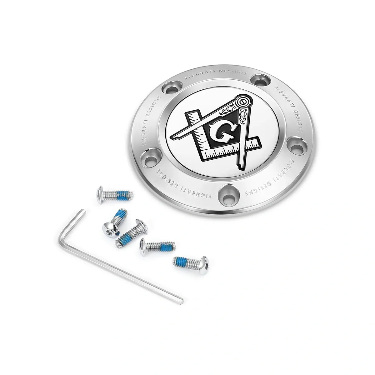Cubierta de sincronización de levas gemelas con emblema masónico de acero inoxidable Harley-Davidson