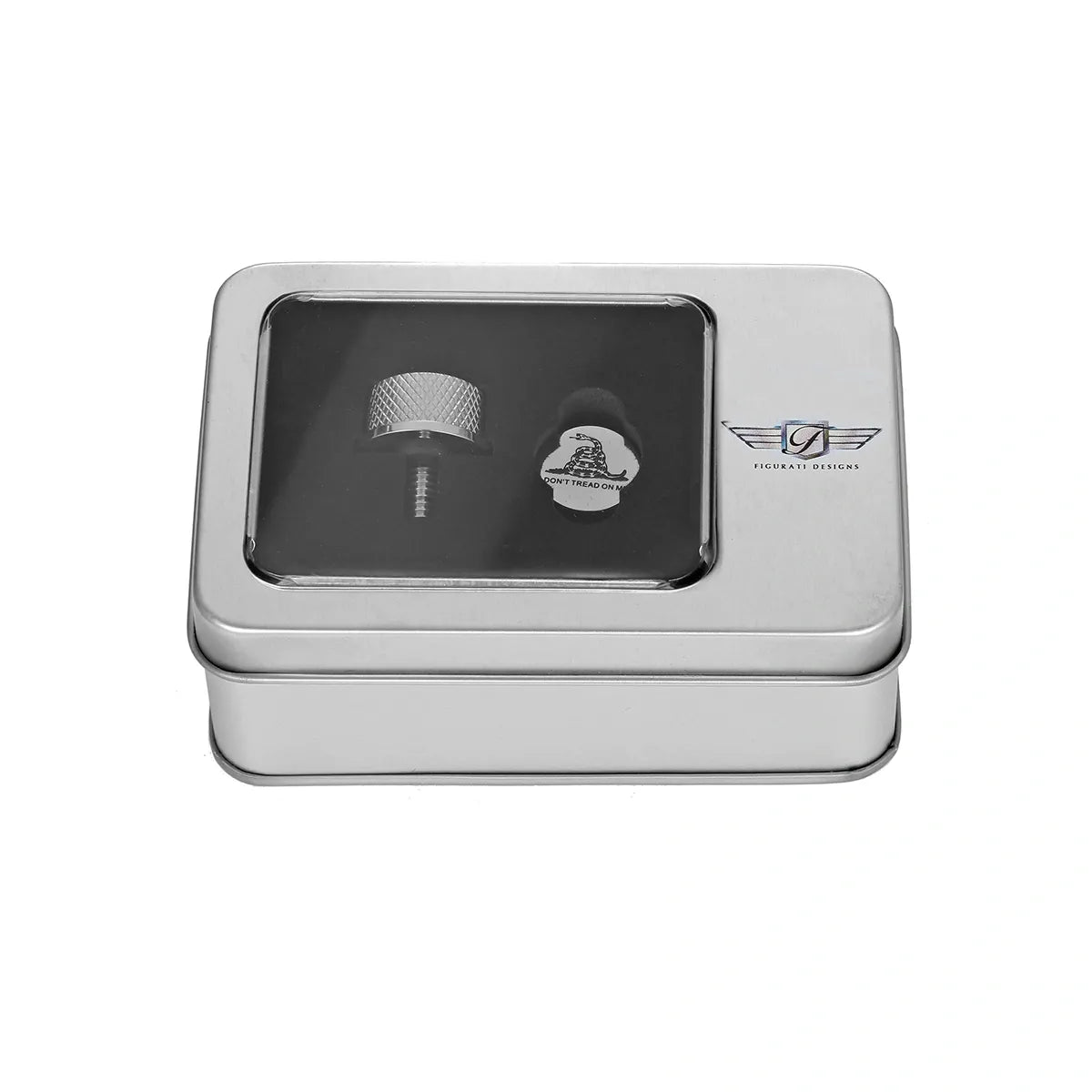 Figurati Designs 316L stainless steel Don‘t Tread on Me seat screws allow you to remove the one-piece Harley-Davidson seats quickly and easily.