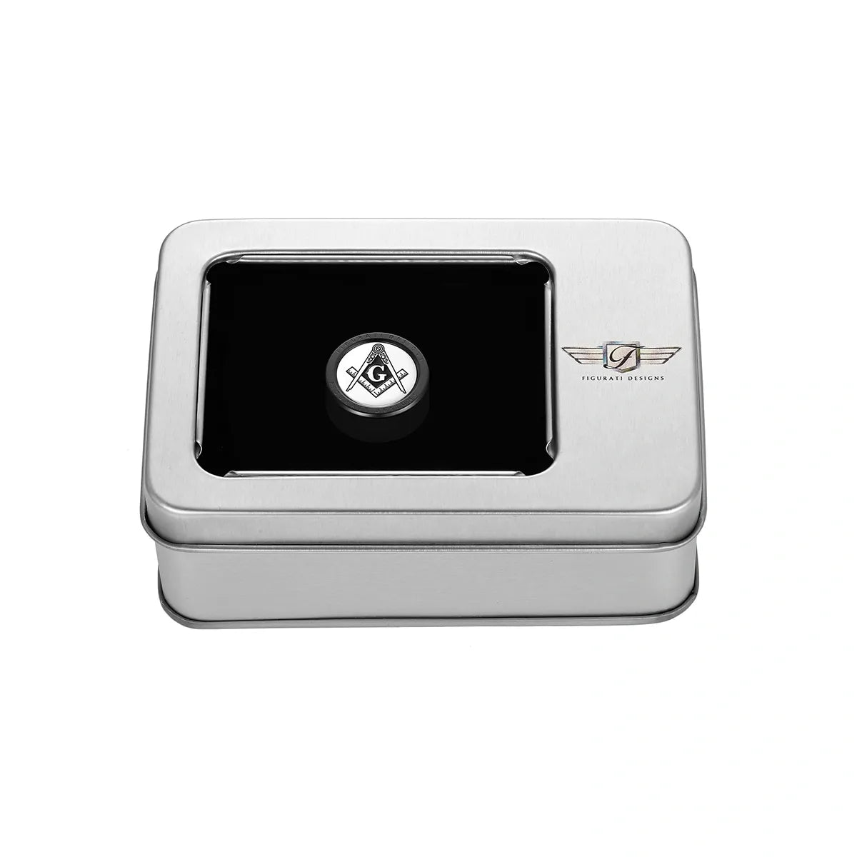 Heel Toe Shifter Cover - Stainless-Steel in Black Masonic Emblem