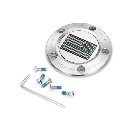 哈雷戴维森不锈钢细绿线美国国旗 - 反向双凸轮正时盖
