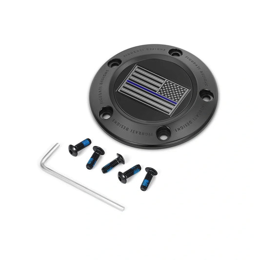 哈雷戴维森不锈钢黑色细蓝线美国国旗 - 反向双凸轮正时盖