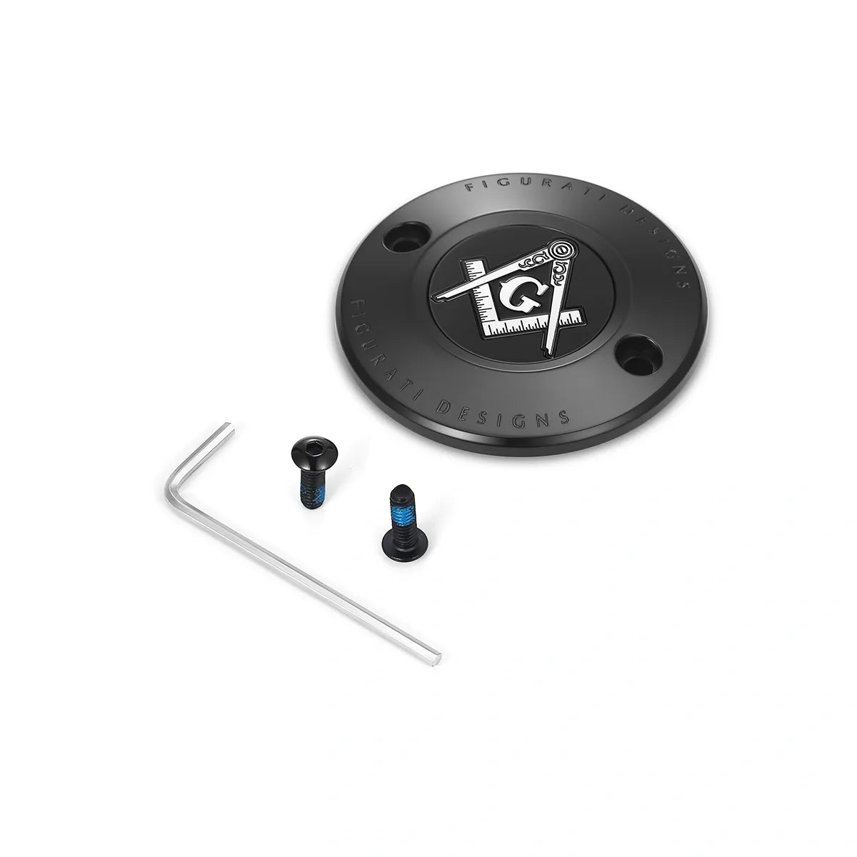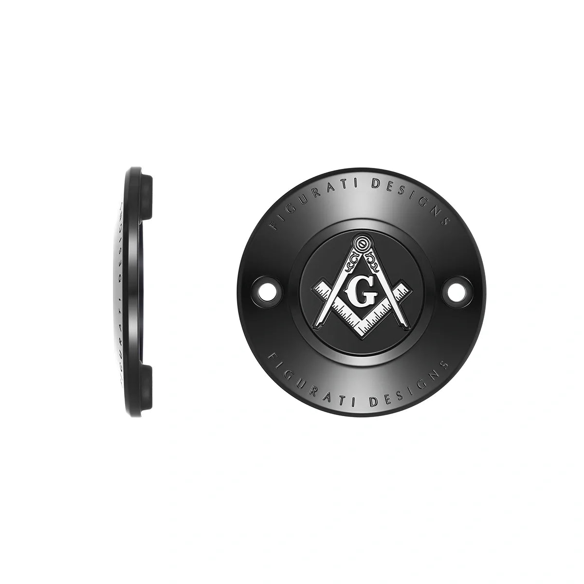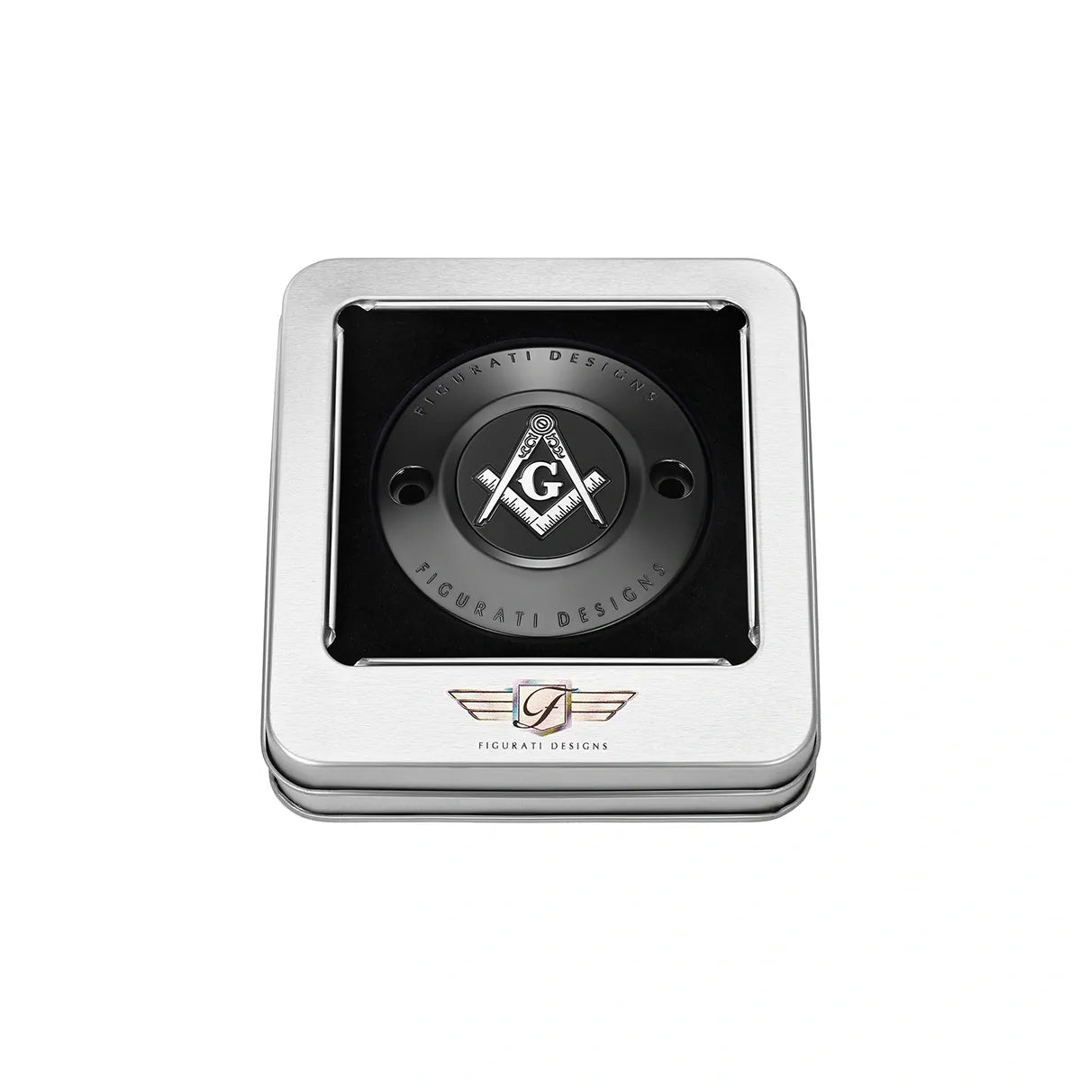 Figurati Designs 定制 Masonic Emblem 正时盖采用黑色 316L 不锈钢制成,将您的正时盖提升到一个新的水平。