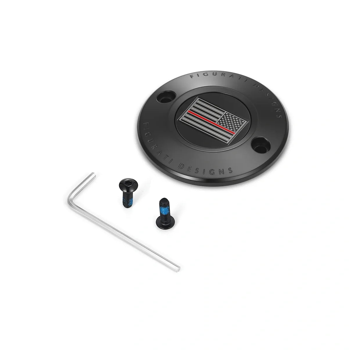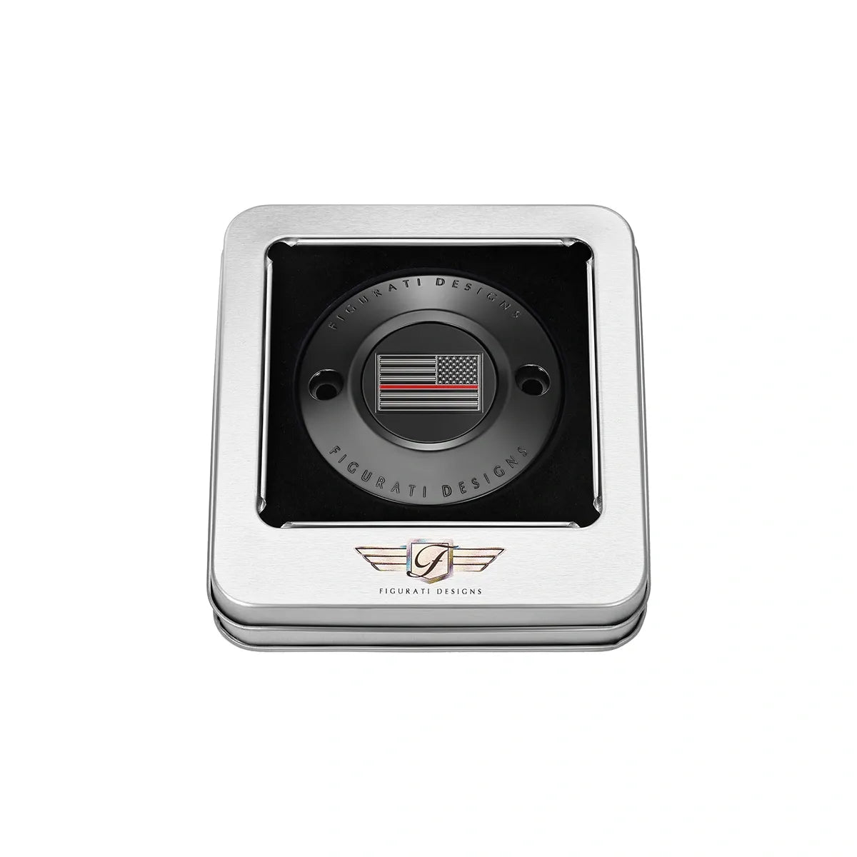 Figurati Designs 定制红线美国国旗 - 反转 - 正时盖由黑色 316L 不锈钢制成,将您的正时盖提升到一个新的水平。