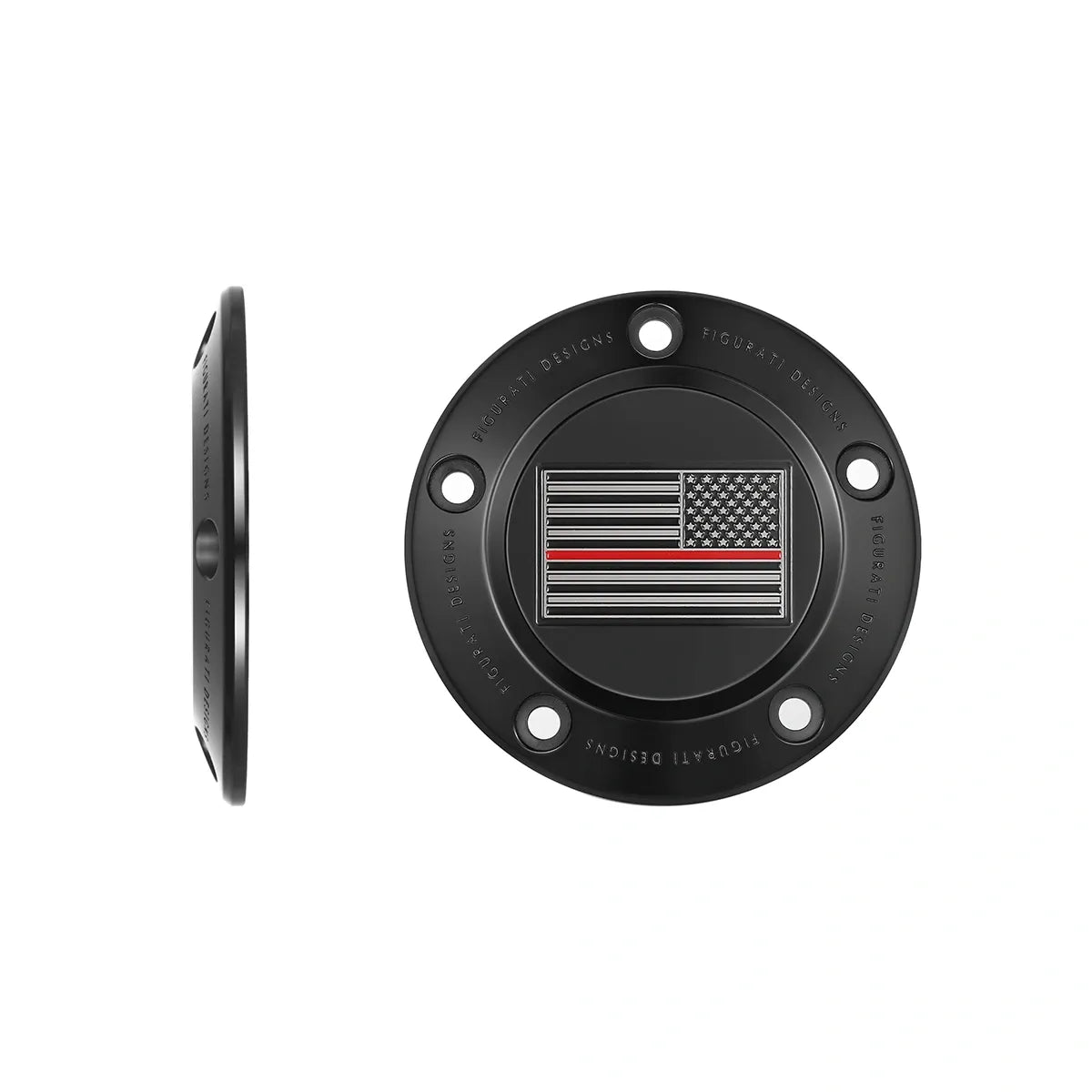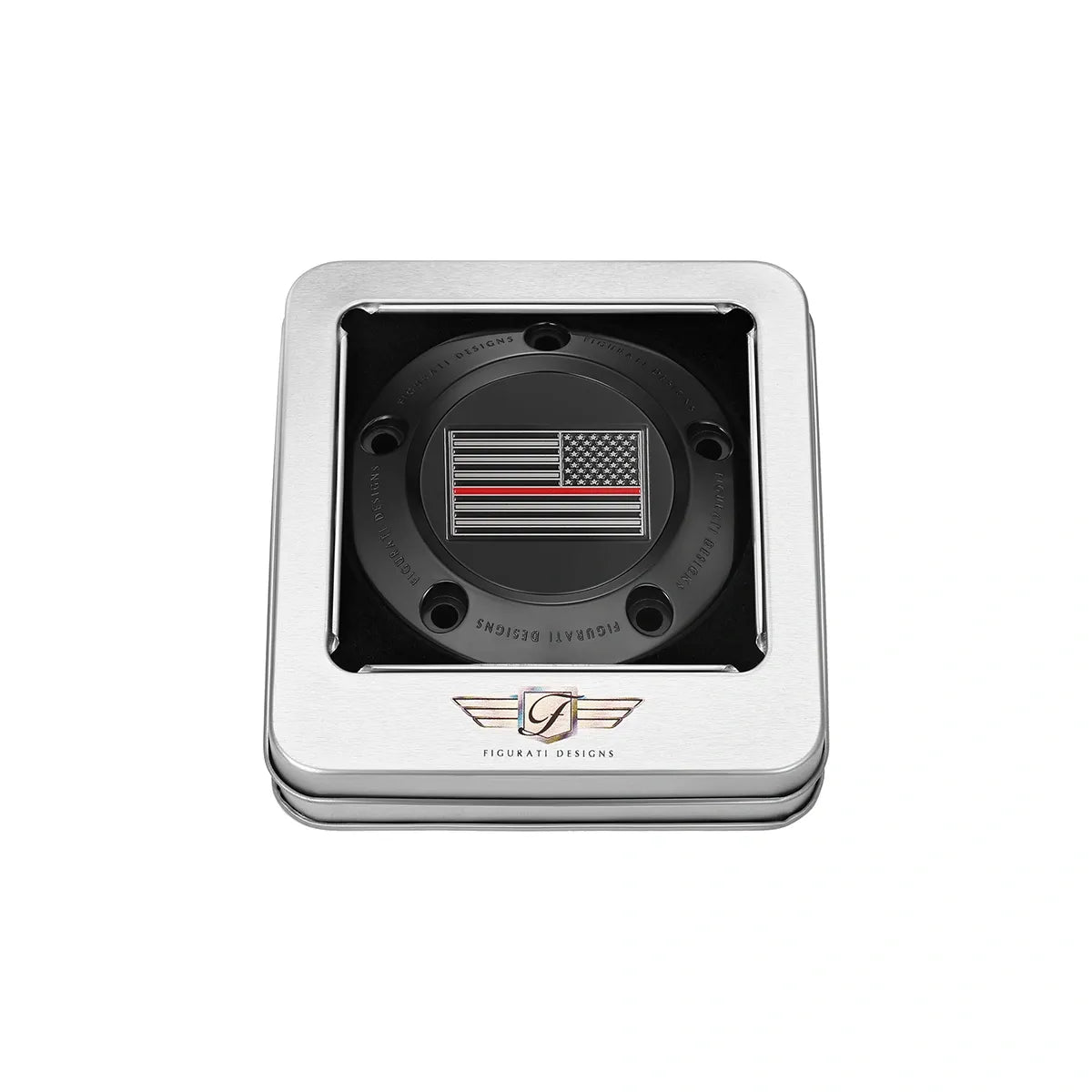 使用 Figurati Designs 红线美国国旗 - 反向 - 定制正时盖,由黑色 316L 不锈钢制成,将您的正时盖提升到一个新的水平。