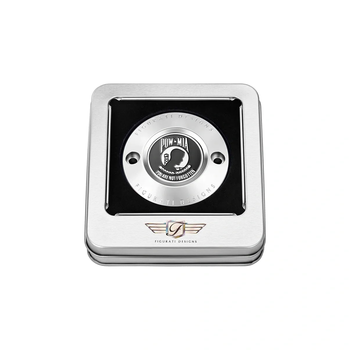 Figurati Designs 定制 POW MIA 正时盖将您的正时盖提升到一个新的水平,该盖由 316L 不锈钢制成,抛光至完美的镜面效果。