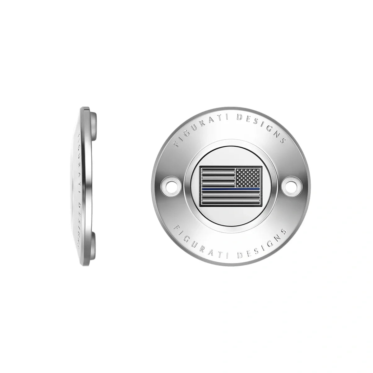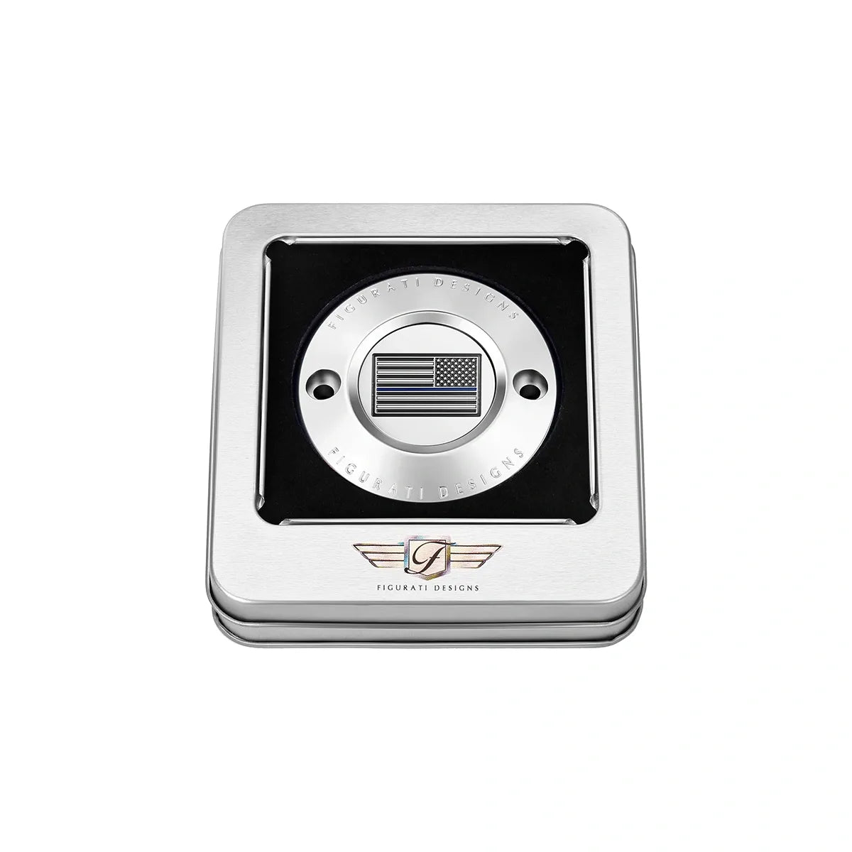 Figurati Designs 定制蓝线美国国旗 - 反转 - 正时盖采用 316L 不锈钢制成,抛光至完美镜面,将您的正时盖提升到一个新的水平。