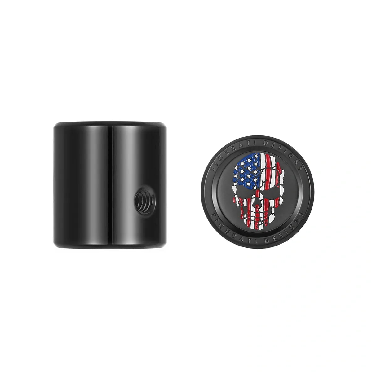 不是后跟移位器……不用担心。 Figurati Designs 满足您的需求!隐藏变速轴的花键端,同时增添一点风格。定制 Figurati 设计 316F 不锈钢黑色、红色、白色和蓝色美国国旗头骨,包括 1 个带防震尼龙胶的固定螺丝和六角扳手。