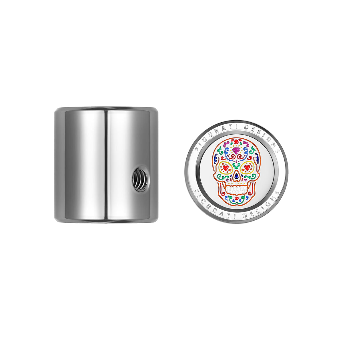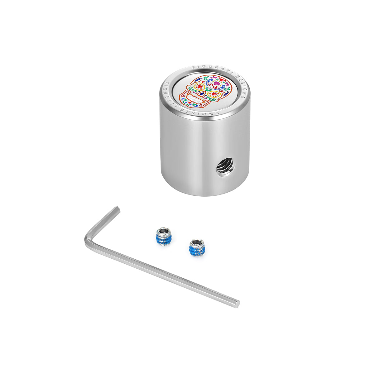 不是后跟移位器……不用担心。 Figurati Designs 满足您的需求!隐藏变速轴的花键端,同时增添一点风格。 Custom Figurati Designs 316F 不锈钢糖骷髅,包括 1 个带防震尼龙胶的固定螺丝和六角扳手。